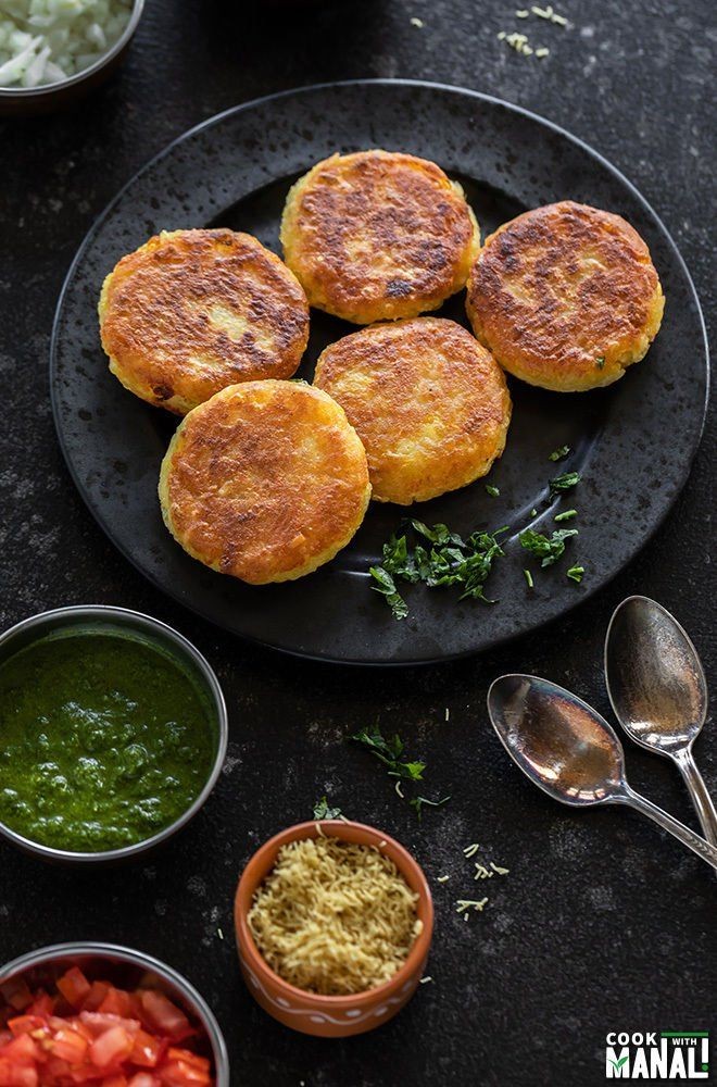 आलू टिक्की    ये कुरकुरी सुनहरी पैटीस मसालेदार मसाले हुए आलू से बनाई जाती है और चटनी, दही या बर्गर के साथ बहुत अच्छी लगती है